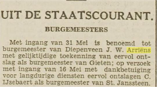 op 27 april 1917 krijgt J.W. Arriëns , van